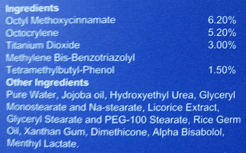 化學性紫外線吸收劑、物理性紫外線吸收劑、物理性兼化學性紫外線吸收劑、荷荷芭油、長效保濕因子