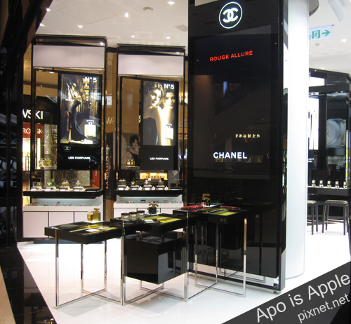 香奈兒即於2010年1月,在台北101大樓開設全球第一家化妝品精品店。集結香水精品店(Espace Perfume)、保養護膚中心(Espace Beaute)以及擁有訂製化限量色彩的彩妝概念店(Makeup Studio)三個獨特空間,將近40坪、挑高4米2的精品化氛圍裡,讓消費者能從香水、保養、彩妝等360度全方位體驗香奈兒的美妝魅力。同時,這也會是香奈兒全球唯一以如此特別的三度空間陳設的專賣店,香奈兒對美妝的極度堅持與細膩詮釋,在這個美妝藝術殿堂中都能完整感受。
