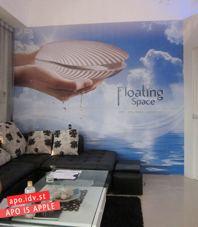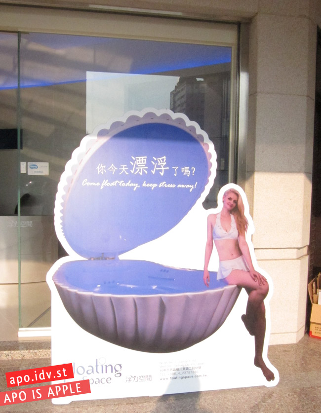 浮力空間Floating Space是台灣最頂級的漂浮中心,採用德國最新漂浮儀器~外面有個大看版~上面就是等下要體驗的貝殼機唷!!光看就很COOL耶~!等不及要想要去看本尊了!!