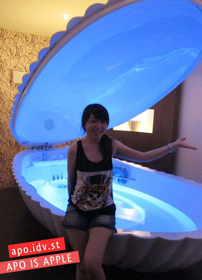當說明完後~Celine就帶我們來到了2樓的空間~目前一共有兩台貝殼機~真的好大一台呀~他是完全的獨力空間~所以一間房間裡只有一台貝殼機唷!
