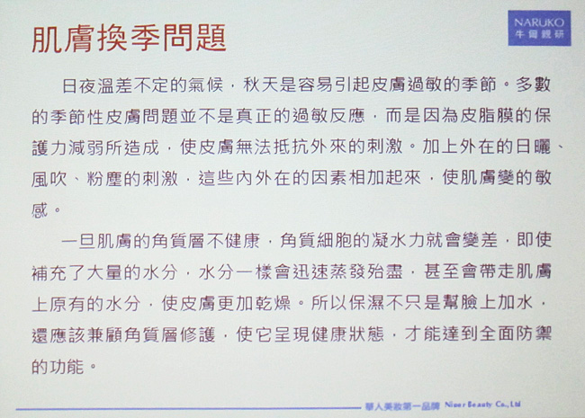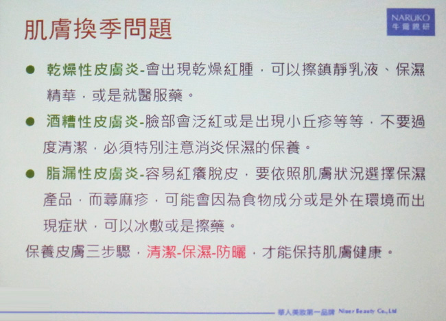NARUKO這次貼心為大家準備了換季講座~讓大家在容易敏感的這季節能夠保養的更好~讓肌膚不受換季的影響~依然水噹噹XD