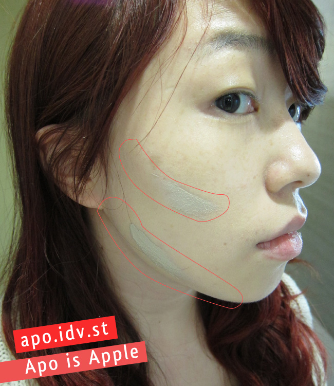 在笑肌下邊~跟下巴側跟脖子的轉彎處擦上後推開