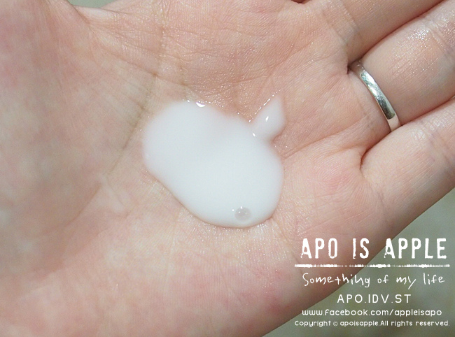 稍微推開~看的出來質地很輕~一般膚質都會適用~我想油肌的朋友應該也能接受~這是一款偏水的乳液唷~